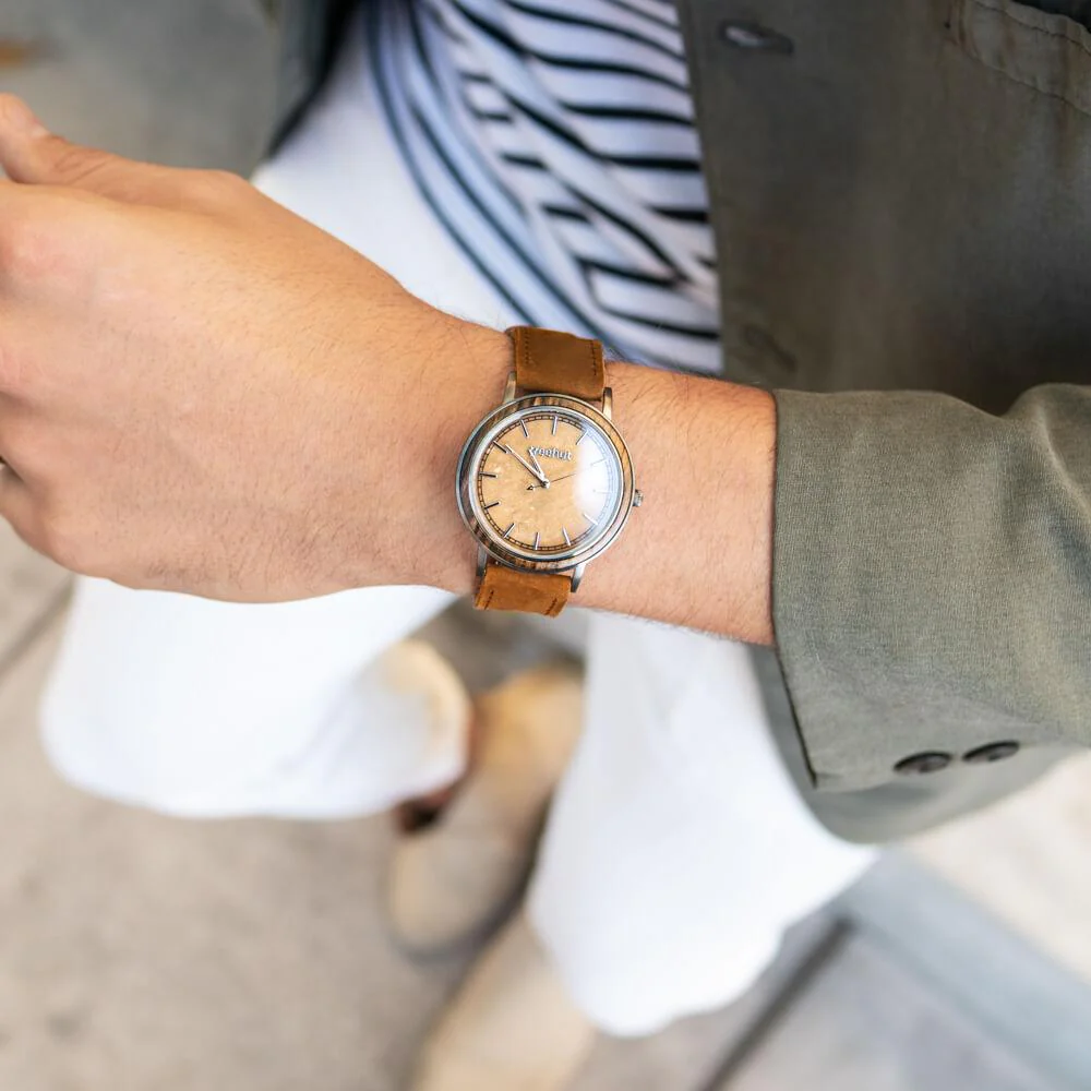 Inspired by the Bay Area of California, the Bay Collection blends diverse materials – marble, wood, stainless steel, and leather – into slim, standout wooden watches for men. Much like the natural mix of coast, forest, and city, these watches reflect effortless balance and modern versatility.