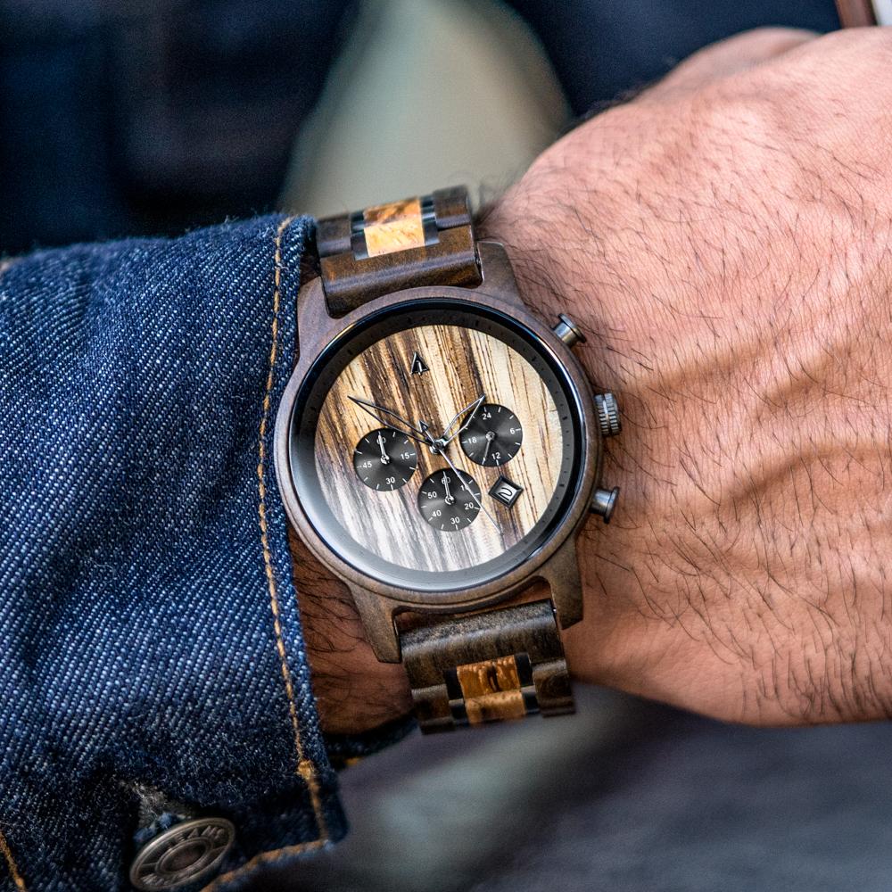 - Case and band made with real wood