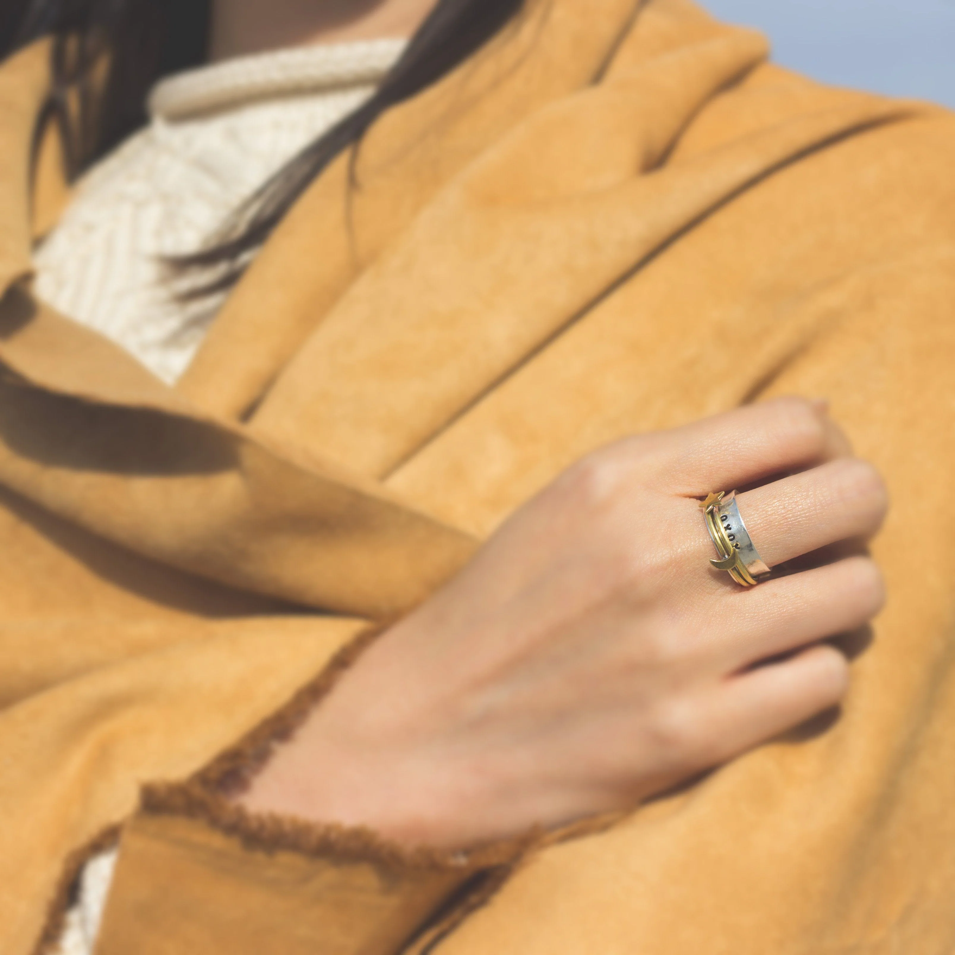 Each piece can be personalized with a hand-stamped message, creating a silver ring for women that balances design with meaning. It’s a simple, handcrafted piece that celebrates connection in its own understated way.