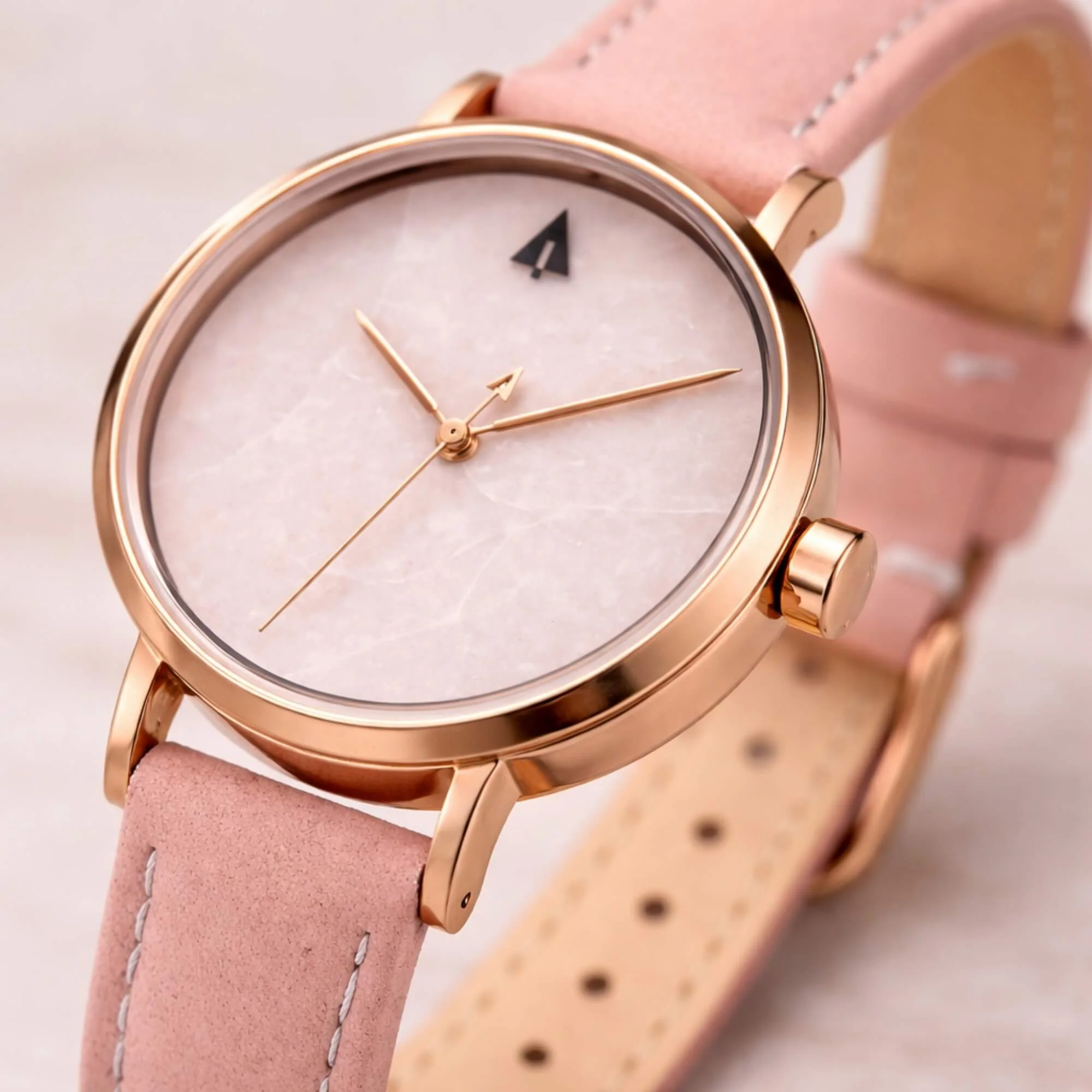 What makes it stand out? No two dials are exactly the same – each one has its own subtle stone pattern, giving your pink rose marble watch a personal, one-of-a-kind feel.